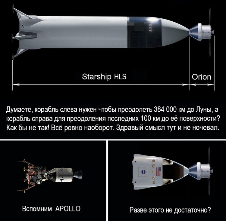 Для высадки людей на Луне Starship HLS в его нынешнем виде непригоден!