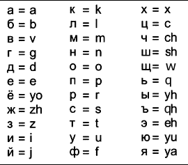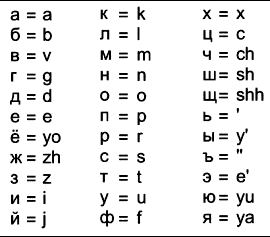БЕЗУПРЕЧНУЮ таблицу транслитерации максимально близкую к ГОСТу, но