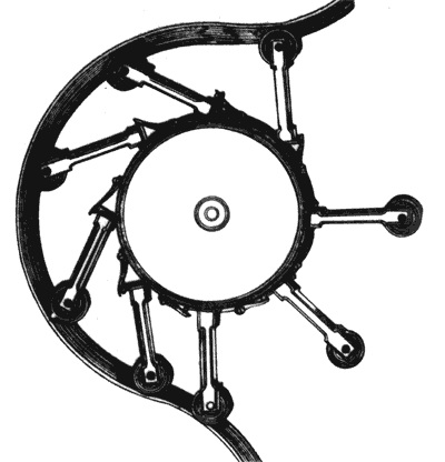 центр тяжести системы грузиков смещается кулисой. Древняя схема
